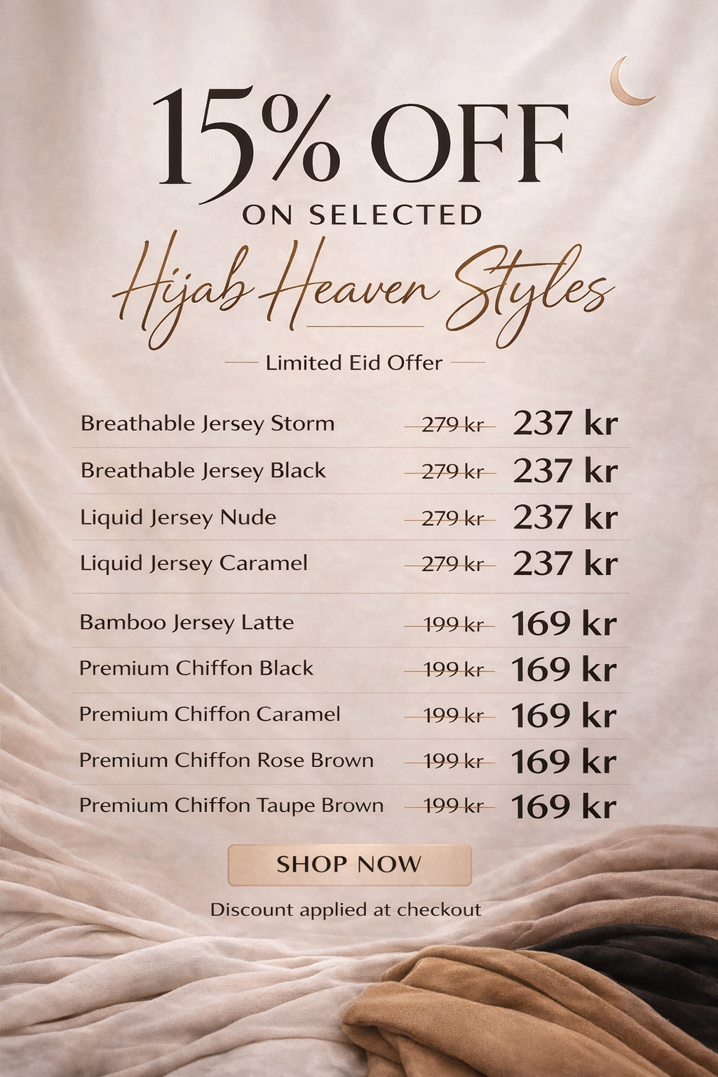 Together we celebrate tradition and modern elegance and now, with Hijab Heaven, we bring you six exclusive premium hijab collections crafted for every woman who values style, comfort, and confidence.
